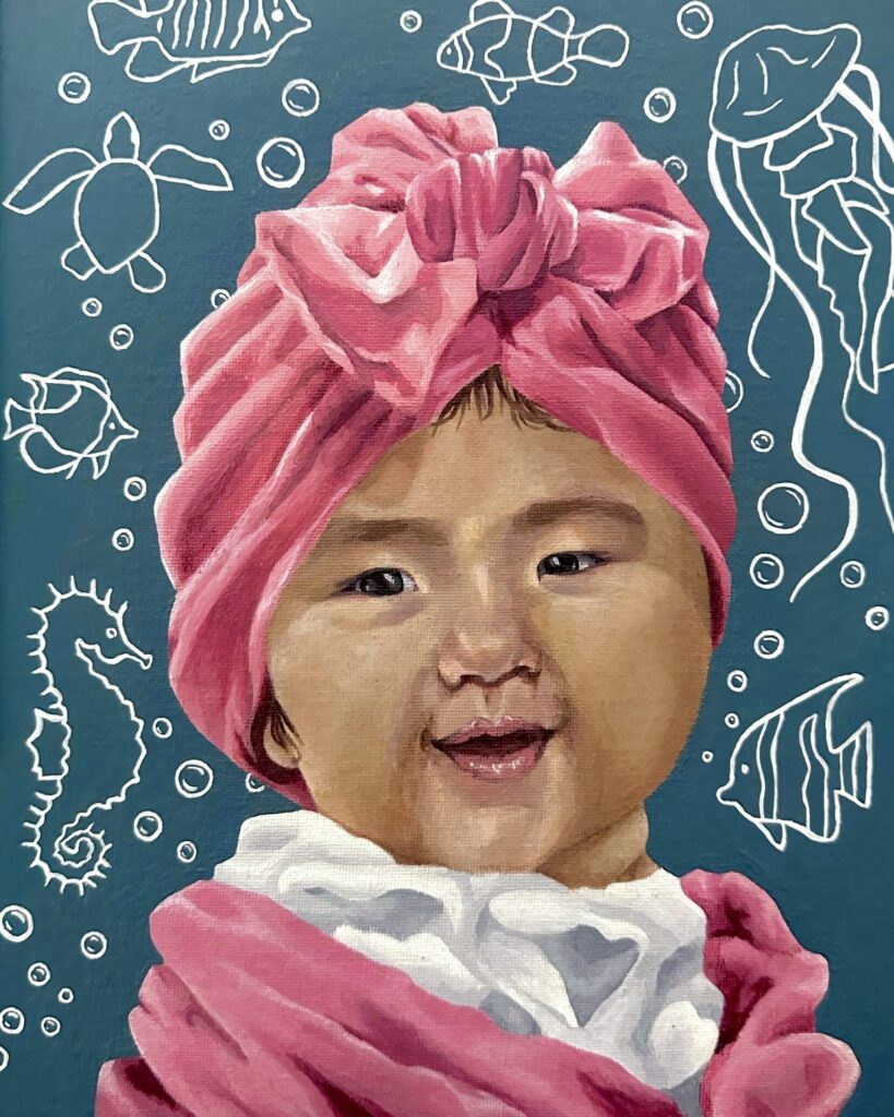 Join us for the opening reception featuring two of Jacky’s original artworks. Her oil painting, “Apricity”, and drawing, “Portrait of Macy”, will be on display.